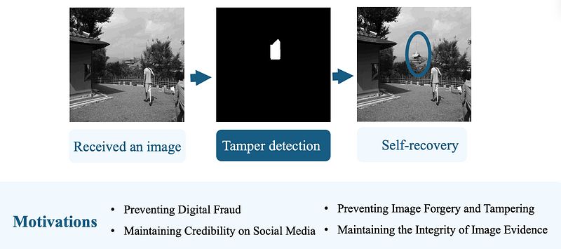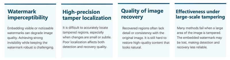 Deep Learning-Based Self-Recovery (基于深度学习的自恢复): Leverages convolutional or generative models to predict and regenerate tampered regions directly from learned representations. This approach offers stronger robustness against compression, noise, and blurring, making it more suitable for real-world applications.