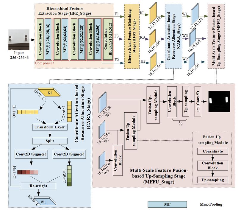 Abstract: In this paper, we construct CAMU-Net, an image forgery detection method, to obtain evidence of copy-move forgery areas in images. In CAMU-Net, the hierarchical feature extraction stage (HFE_Stage) is used to extract multi-scale key feature maps. Next, a hierarchical feature matching stage (HFM_Stage) based on self-correlation combined with a multi-scale structure is designed to predict copy-move forgery areas with different scales of information. To optimize the matching results, we design a coordinate attention-based resource allocation stage (CARA_Stage), which uses a location and channel attention mechanism to assign more weight to copymove areas. In this way, useful information can be strengthened while irrelevant information is suppressed. To effectively use the multi-scale prediction results in the multi-scale feature fusion-based up-sampling stage (MFFU_Stage), we integrate the high-level and low-level information into one information flow. By combining the global feature information of the deep layers and the location details of the shallow layers, the performance of CMFD can be improved. To demonstrate the validity of our model, we compare it with a variety of traditional methods and deep learning methods. The results show that our performance is outstanding. In particular, on the COVERAGE dataset, our AUC is 87.3%, which is 2.4% higher than the second place. In addition, we design a variety of baseline methods to perform several ablation experiments to demonstrate the validity of the modules in this model.